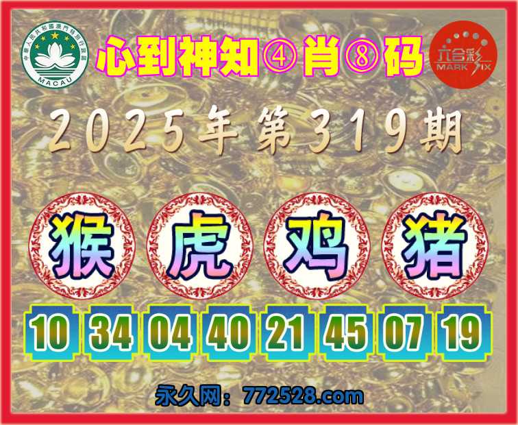 319期:〖心到神知〗 ☺️④肖⑧码☺️【猴虎猪】开:鸡45准上榜高手
