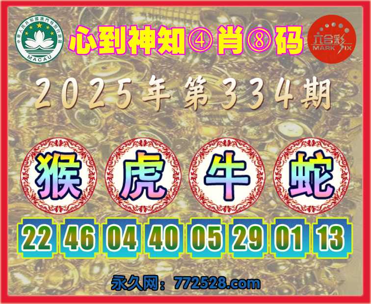 334期:〖心到神知〗 ☺️④肖⑧码☺️【虎牛蛇】开:猴46准上榜高手