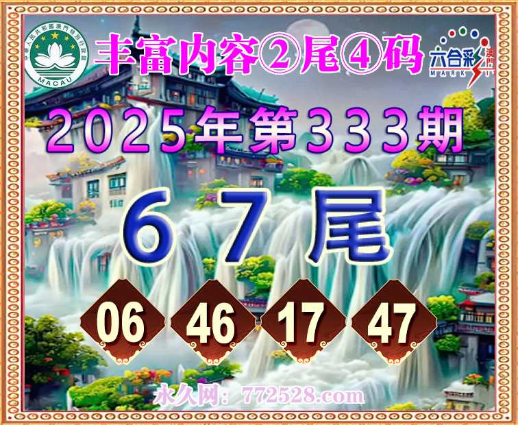 333期:『丰富内容』 ☺️②尾④码☺️【67尾主:06.46.17.47】开:06准上榜高手